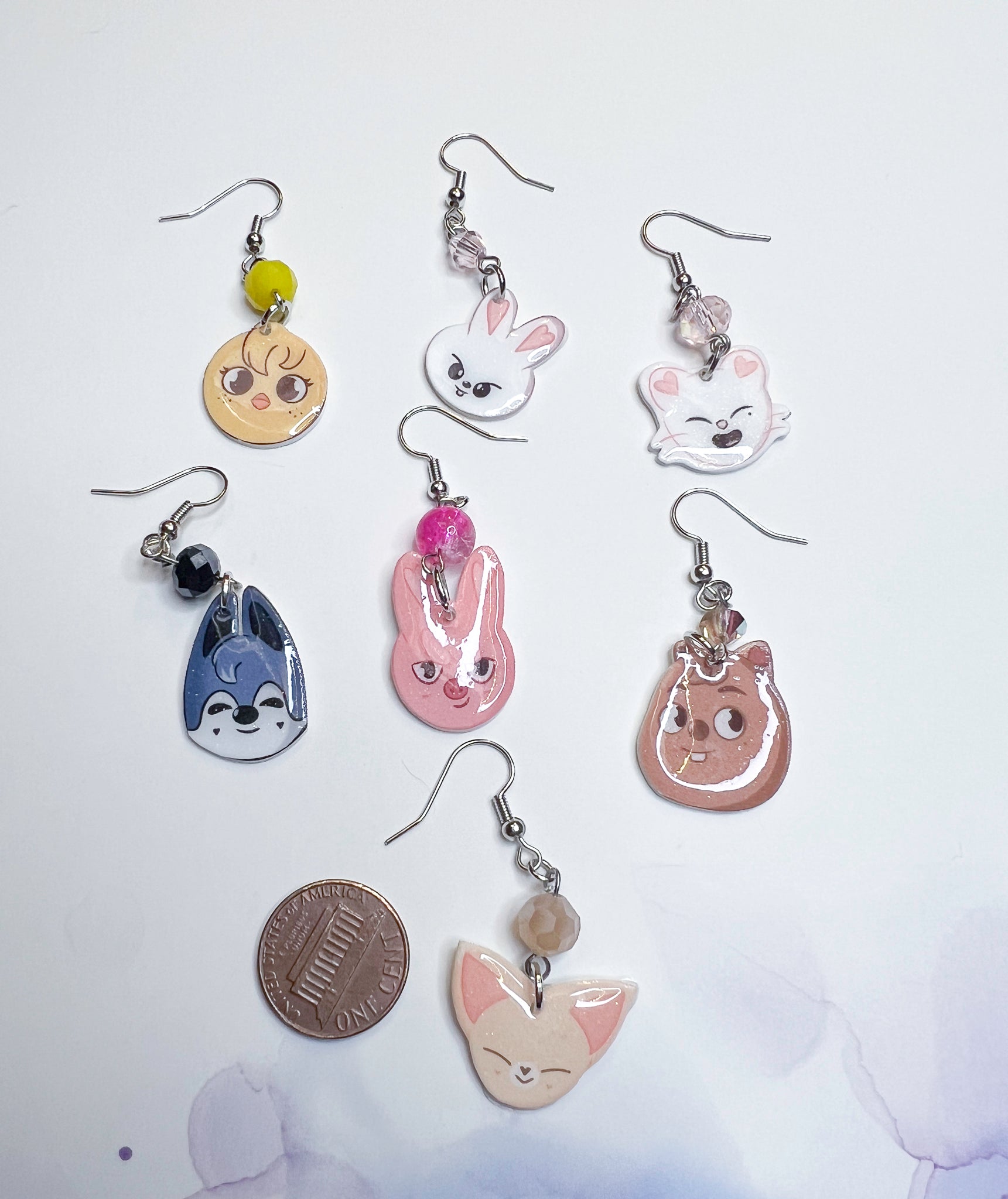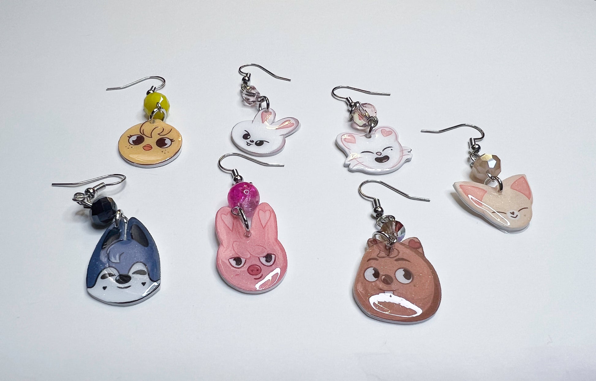 Shout out to all of our Stays out there! K-Pop is something that we are just starting to sell in our shop so we've decided to make both stickers and earrings of the SKZ Zoo animals with our own twist. All of them are drawn by @paintedsloth_13, we included hearts on each one of them to make them extra cute so we hope that you enjoy them as much as we do