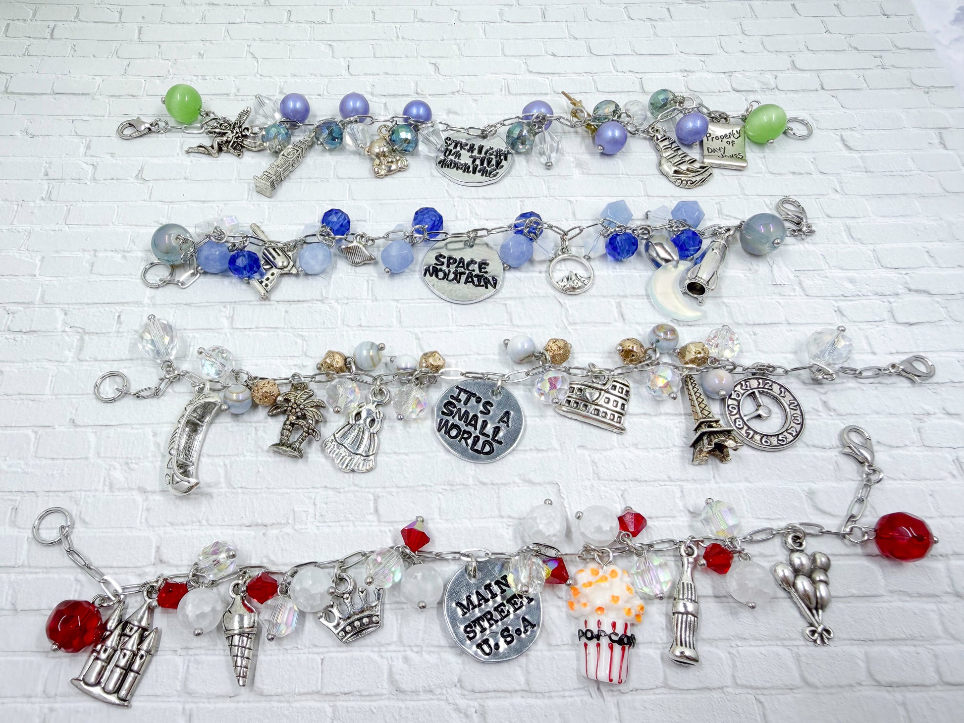 We decided to make charm bracelets based on our favorite rides in the parks. Now you can take your favorite ride or park with you. This is just more of our ride bracelets