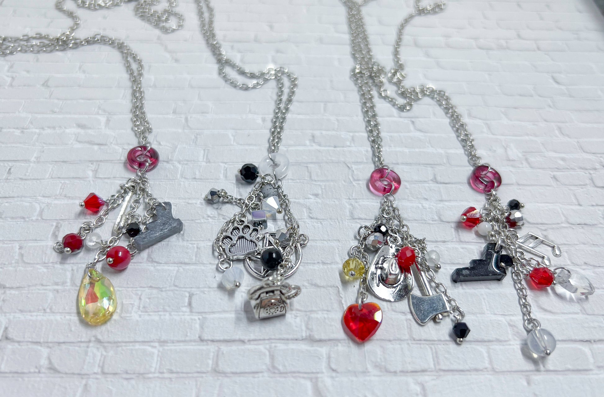 I made the Helluva Boss characters each into a necklace. I added beads and charms to represent each character. I will be making more characters soon but if you want a custom just let me know.