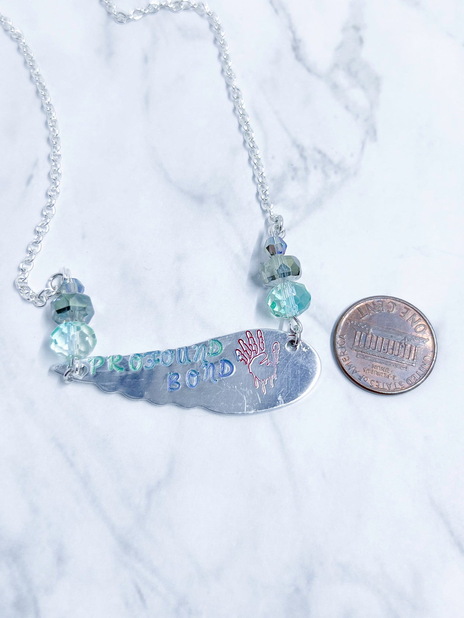 This hand-stamped beauty captures the essence of an iconic connection with its striking green and blue hues. Perfect for fans who understand the power of profound bonds, this necklace is a wearable tribute to Destiel A must-have for anyone who gets it.