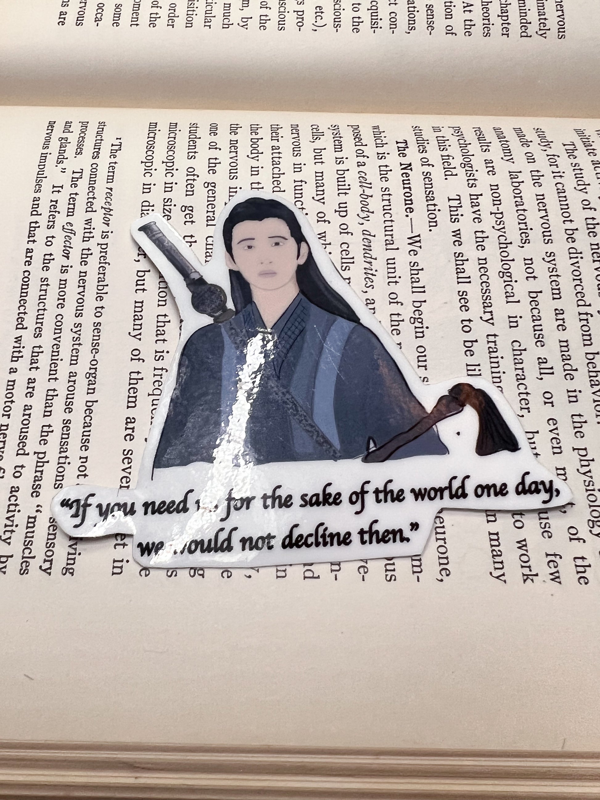 Song Lan sticker says "if you need us for the sake of the world one day, we would not decline then. "